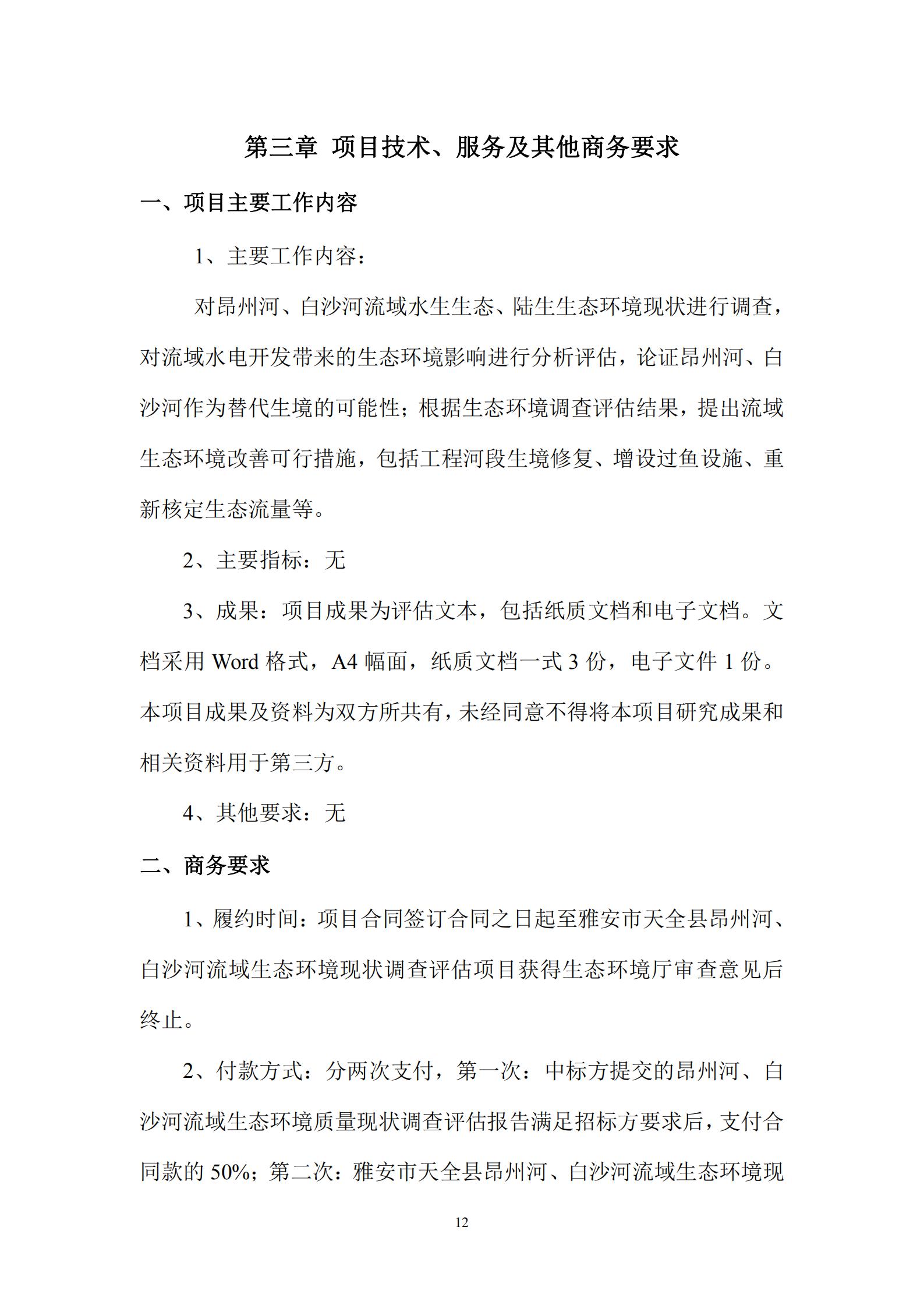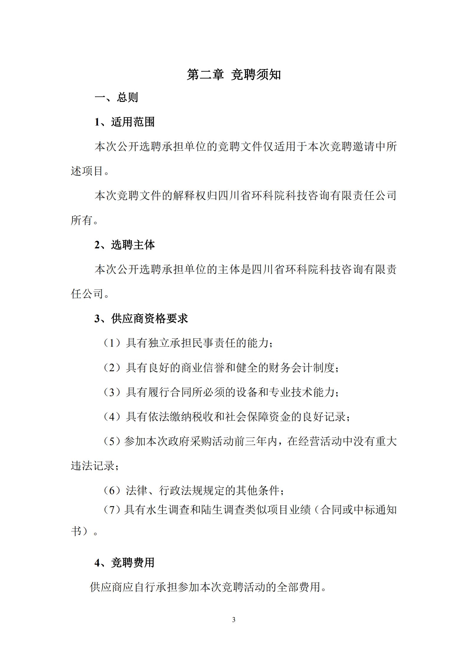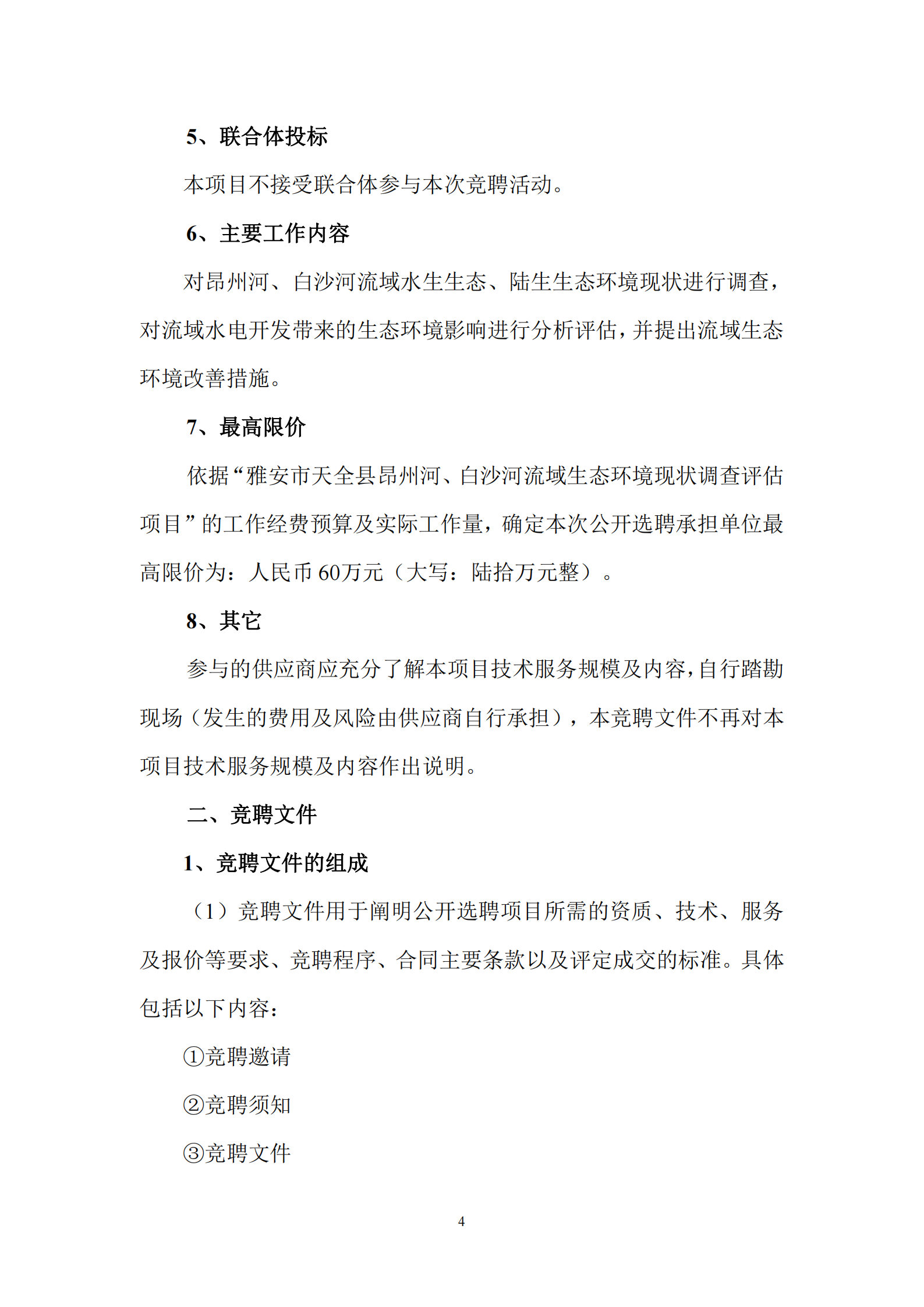 我公司擬就“雅安市天全縣昂州河、白沙河流域生態(tài)環(huán)境現(xiàn)狀調查評估項目”工作公開選聘承擔單位?,F(xiàn)邀請合格的供應商參加公開選聘承擔單位的競聘活動,選聘文件如下: